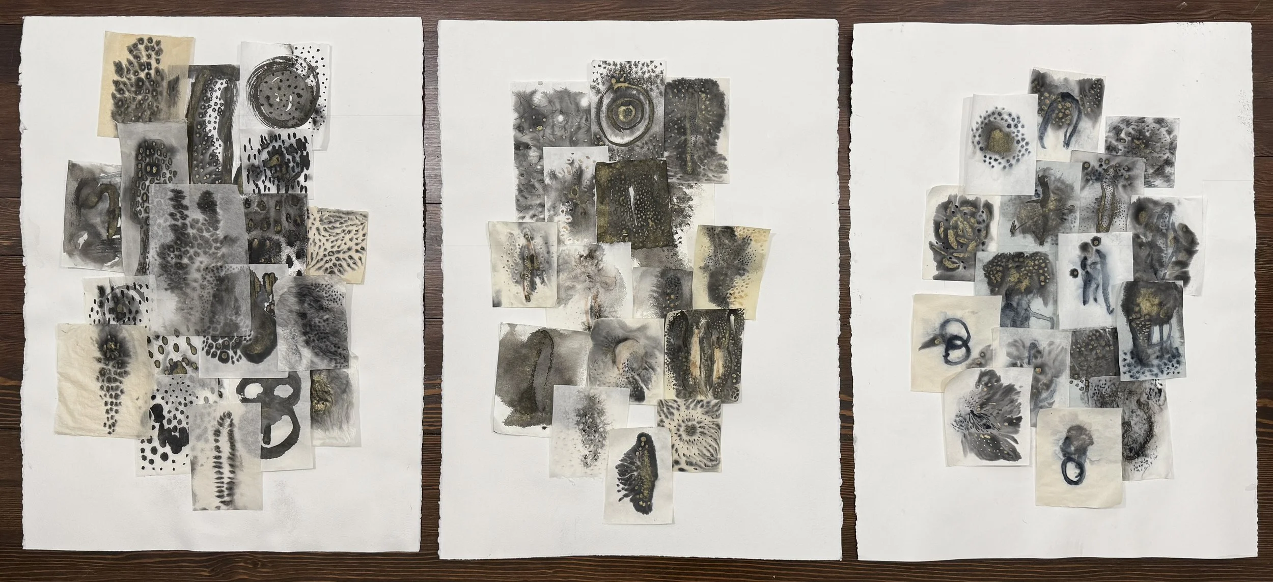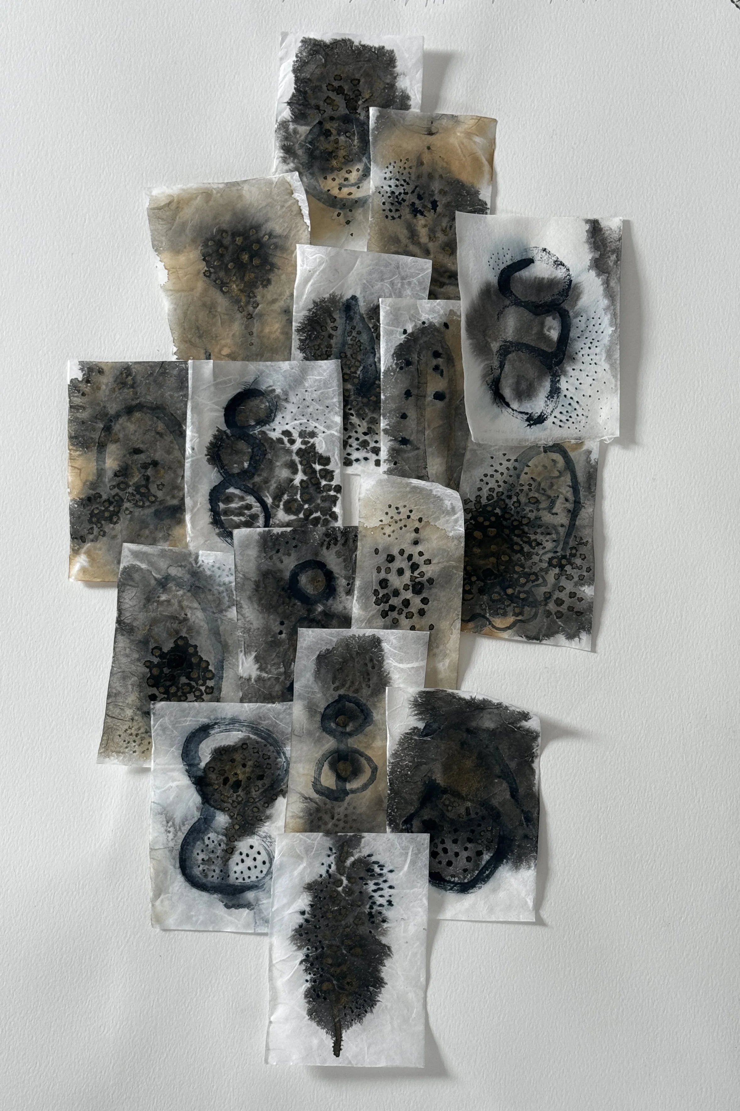 washi papers, Chinese ink, indigo pigment, blood